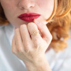 Découvrez cette Bague Femme Solitaire Rose Perlée en Plaqué Or et Diamant Naturel. Conçue spécialement pour les femmes, cette bague est un véritable bijou d'élégance et de sophistication.
